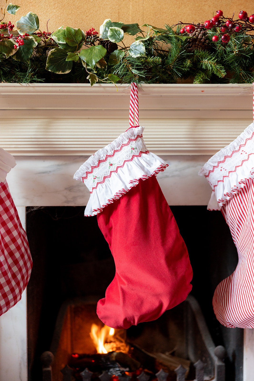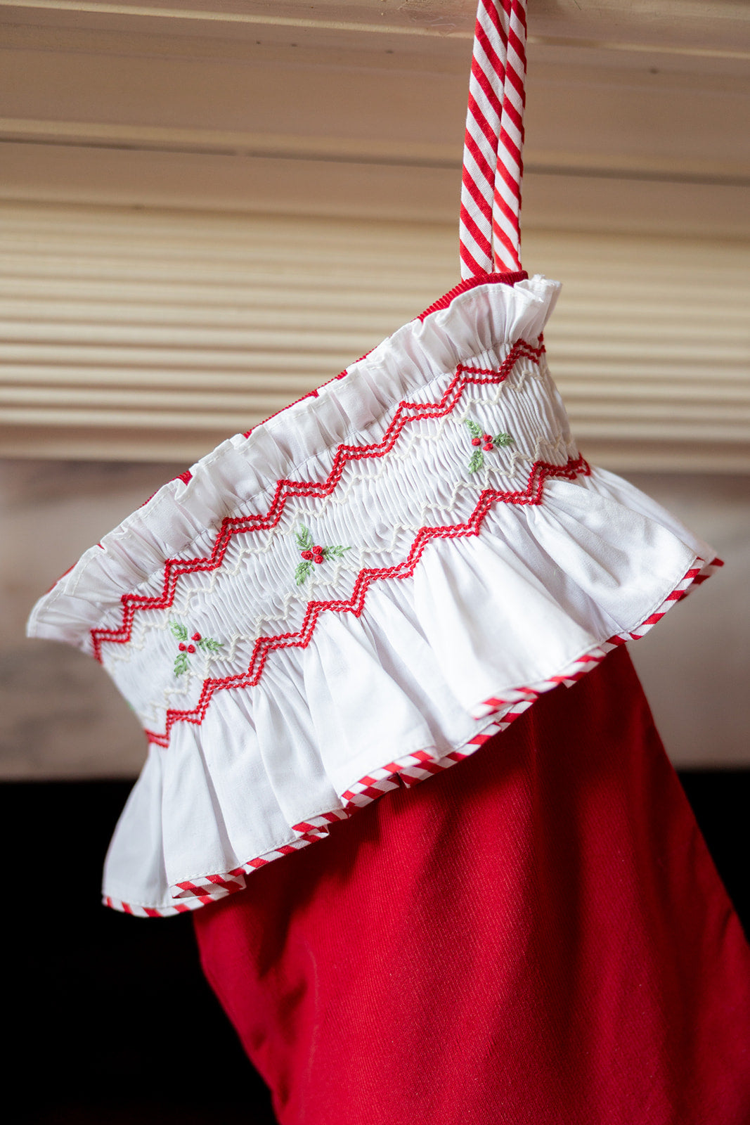 The art of hand-smocking is so wonderfully nostalgic and timeless that it lends itself perfectly to heirloom pieces. And nothing feels quite so evocatively nostalgic as the tradition of hanging Christmas stockings and laying out festive sacks on Christmas Eve. The giddy excitement at the prospect of a visit from Father Christmas and the goodies that will fill the stocking/sack come Christmas morning.